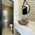 8 banheiros com gabinete e box blindex.